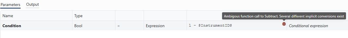 If the expression is invalid, an error icon appears, that can be hovered for more information.