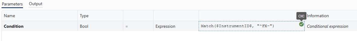 To validate the expression, close the expression editor by clicking anywhere outside it and click the debug button at the top-right of the expression field: