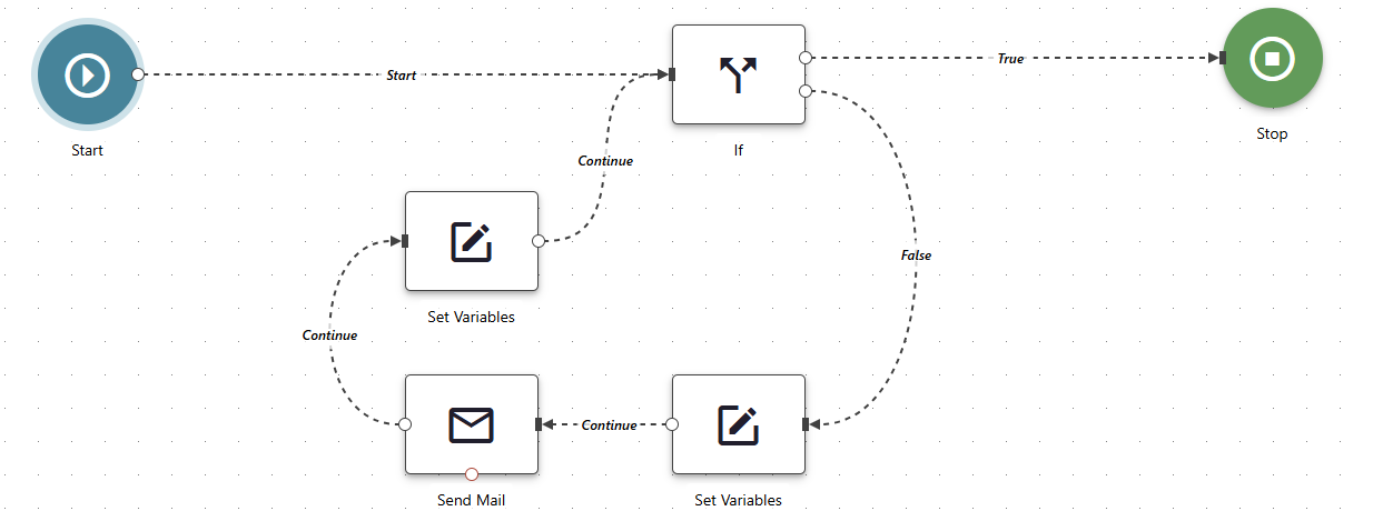 The Stop node may be used as the last step in a Workflow. A Workflow without any next step will stop by default. Using a Stop node is completely optional, but recommended to make large, complex workflows, where a single disconnected outgoing port can easily be overlooked, more readable.